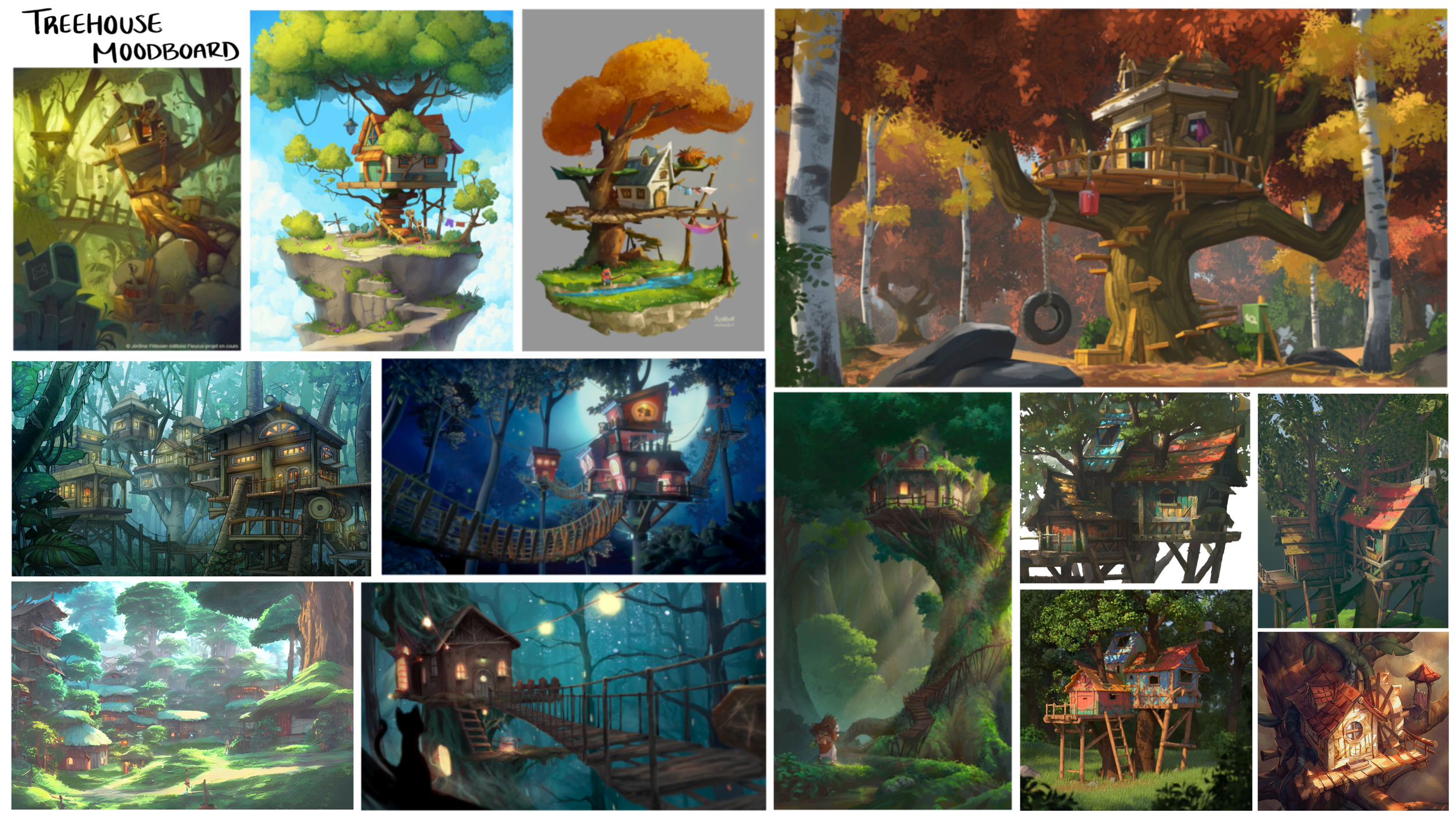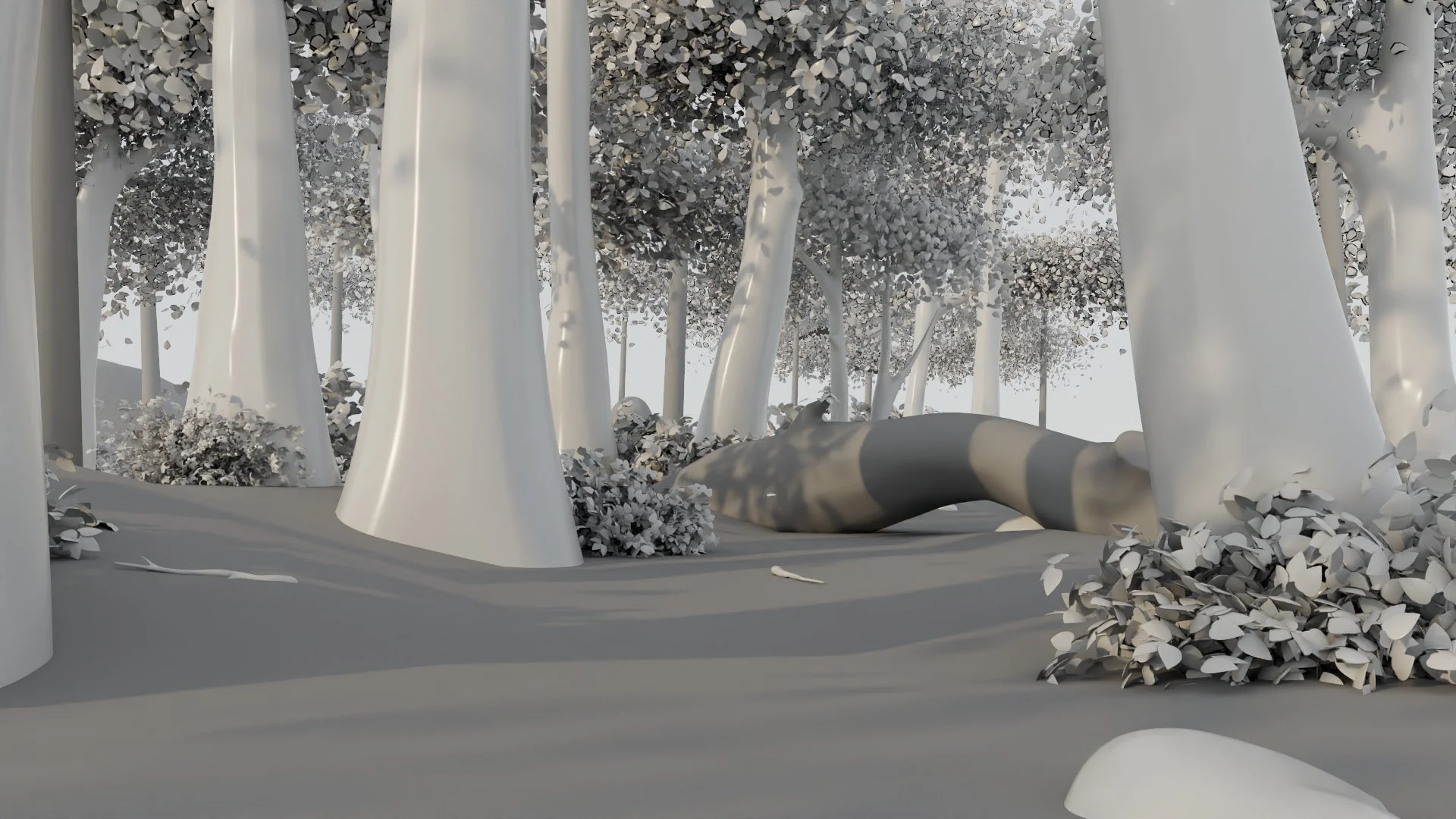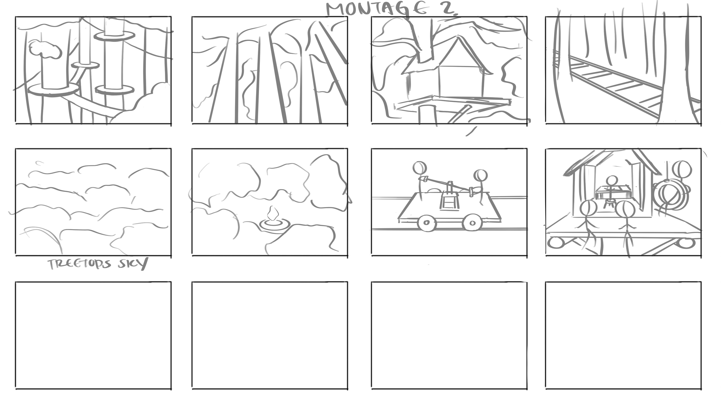 The forest environment made it necessary to have a variety of layouts to account for the characters moving through the space. The placement of the trees and foliage helped force perspective and draw focal points in each scene.
