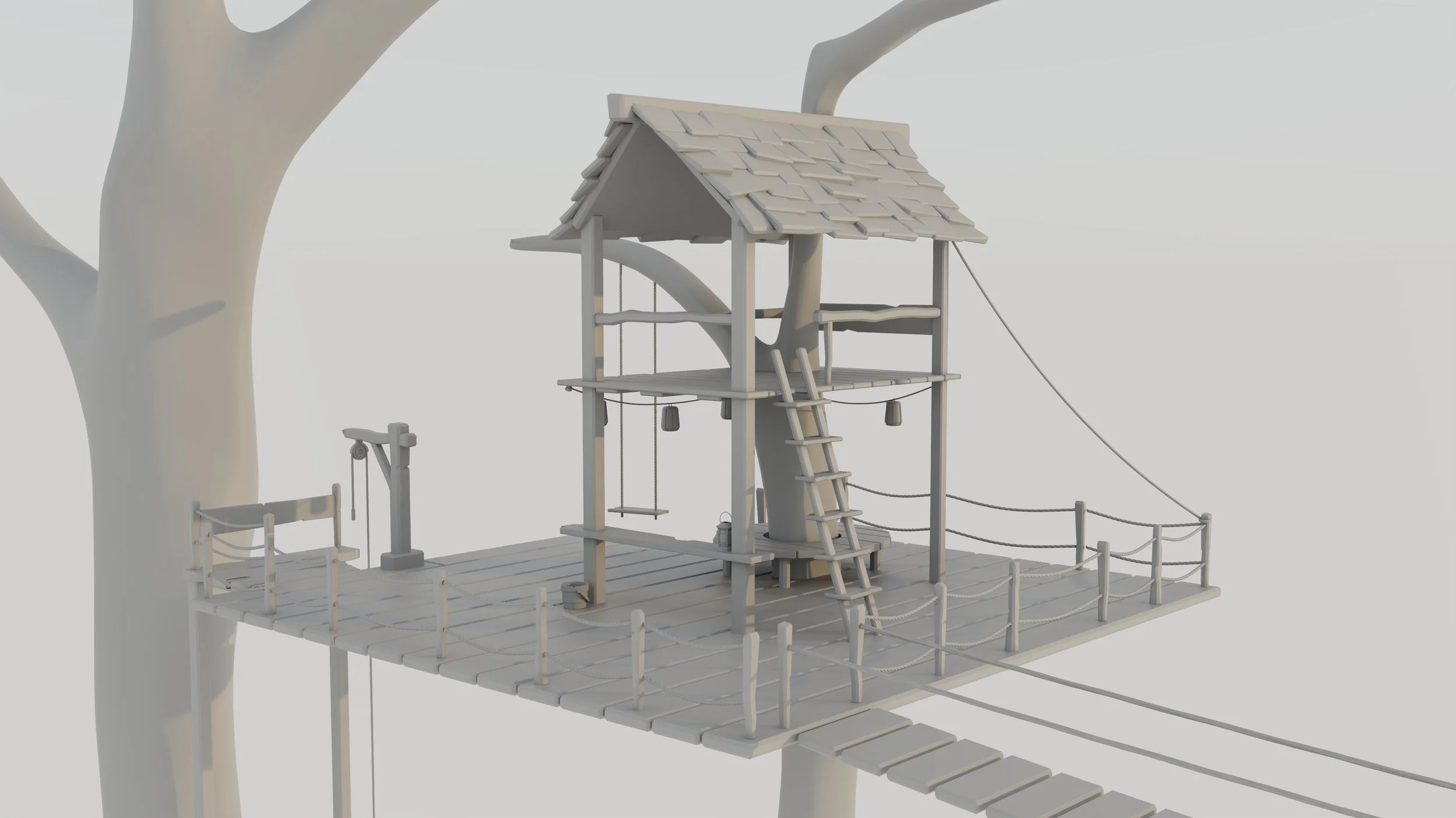 The tree houses, platforms, and bridges are built around nature. This was a design choice made to align with the villagers respect for the forest and their desire not to disrupt its natural growth.